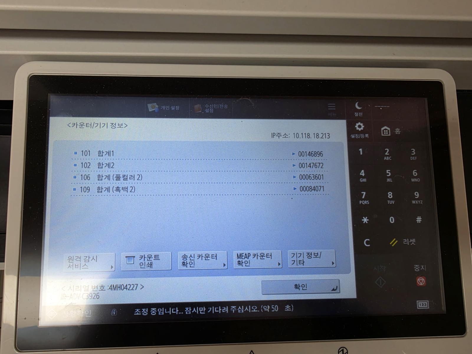 아름고등학교 5층 3학년 교무실 오른쪽 복사기 검정토너 없음